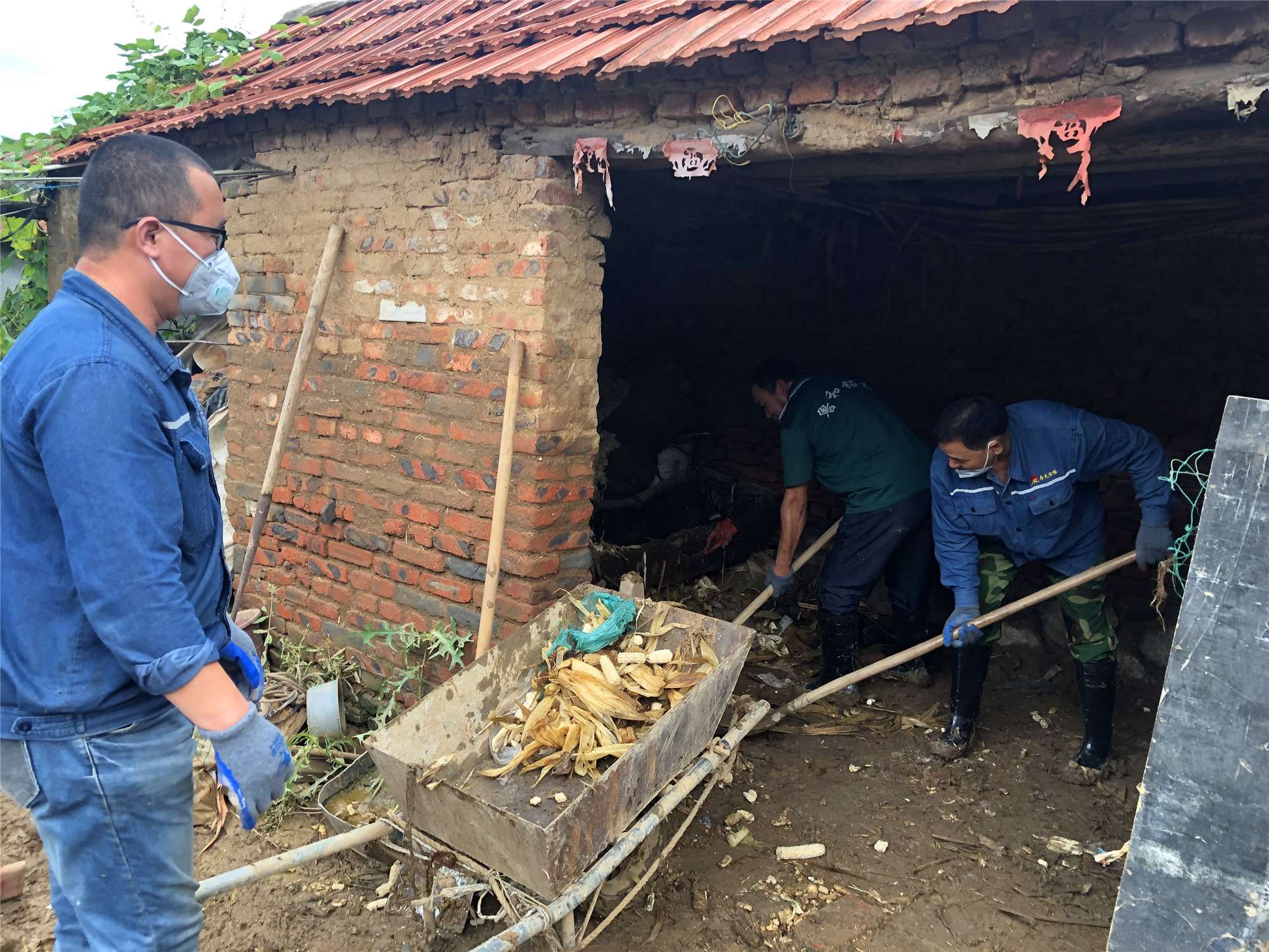After arriving at nanwangjiazhuangzi village, Yingli Town, we found that after the flood, the mud in the streets and alleys of the village was deposited, which made it very difficult for the people to travel, the environment in the village was worrying, the daily production and life could not be carried out normally, and the disaster situation was serious.