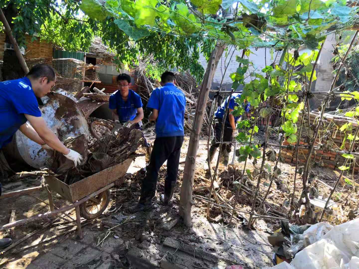 In recent days, during the voluntary service activities, our company guarantees that there are about 30 volunteers in nanwangjiazhuangzi village every day to clean up the mud and garbage in the house for the villagers, and help to remove the Kang and courtyard wall damaged by the blister. During the day, two large-scale forklift trucks constantly remove the sundries on the road. On the evening of August 17, our company's volunteer service team received the latest work arrangement, concentrated the team's manpower and cleaned up the central street of the village. The central street has a long road and a large area. Our volunteer team will go all out to clean it up, which is also our current key work.